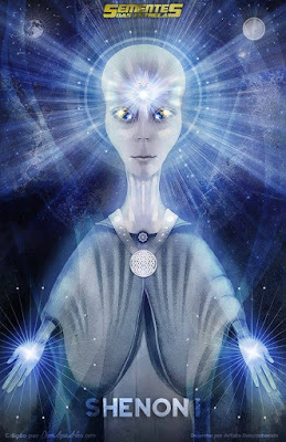 SHENON I, O ARCTURIANO MAGNÉTICO é um ser de origem primária do Universo Magnético, Quadril 5, o mesmo Universo de Kryon, Zero i, IUD-IL, Alfeus, Silvestra e Eliar Flours. É um especialista em Magnetismo e também Engenheiro Geneticista especialista em modelagens de corpos humanoides. Sua primeira manifestação após a saída do Universo Magnético e chegada a estas áreas foi no Sistema de Arcturos. Shenon i também tem manifestações no Sistema das Plêiades. Sua roupagem atuante dentro do PVSE é um lindo Arcturiano de, aproximadamente, dois metros e meio, com três olhos, sendo um deles na altura da testa. Lindos olhos azuis, mas que mesclam entre o Azul e o Dourado Brilhante. O terceiro olho seria um Portal que o conecta com todos os outros do seu agrupamento e, através dele, consegue acessar outras dimensões e até Universos Locais. Teve também passagens em vários outros Sistemas Estelares, dentre eles, o Sistema de Dracos, quando decidiu assumir aquela roupagem, a fim de ajudar na dissipação de uma guerra que estava havendo naquela região. No Universo Magnético é um Lindo Anjo de tom...